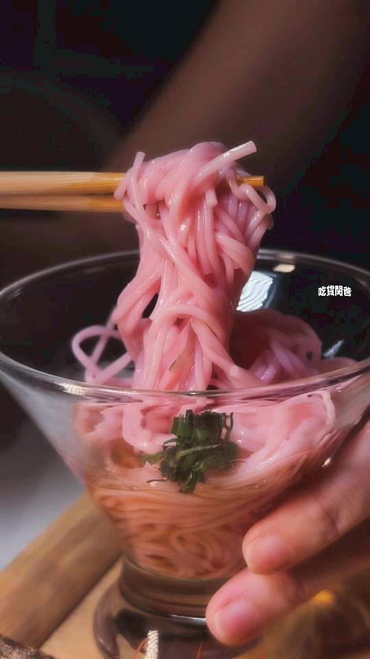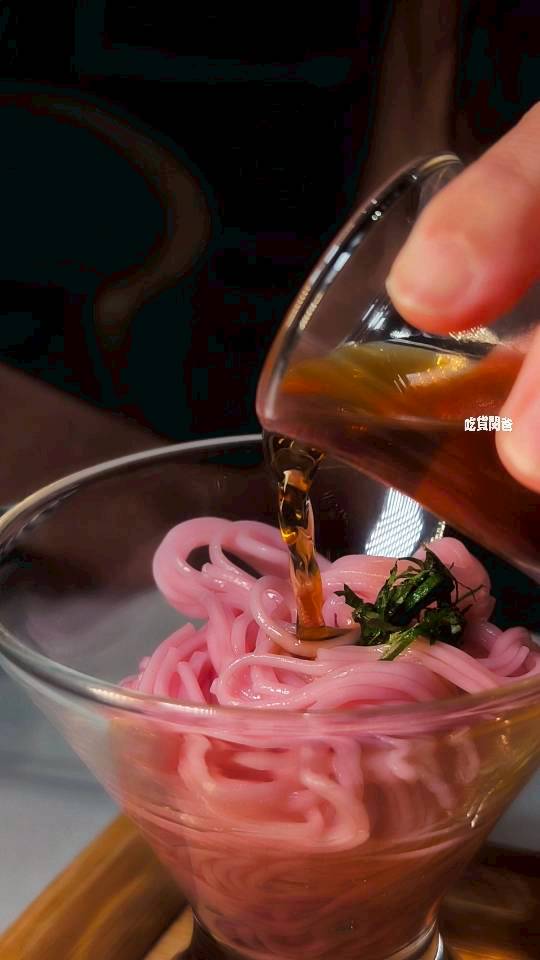 清爽解膩的最佳角色,冰涼口感的粉色麵條搭配淡雅醬汁,讓整套餐點增添了療癒感..