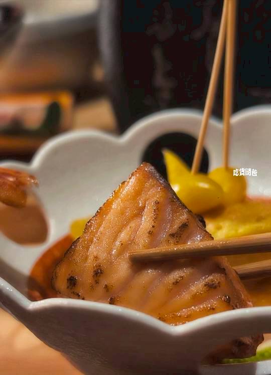 醬汁滲入鮭魚的油脂中,香氣濃郁,魚肉外層微焦,裏頭仍保有生嫩度。