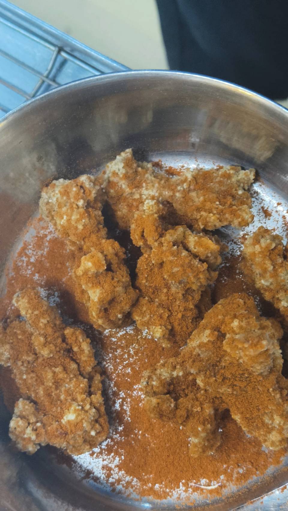 而麻辣口味,外層紅通通、香辣的粉末一口入魂,咬下後的肉汁中還帶著微微麻感,也是讓人不自覺一口接一口。