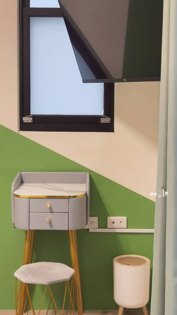 光是這一樓綠白相間色系的房型,我就覺得很加分。