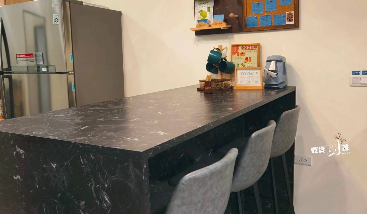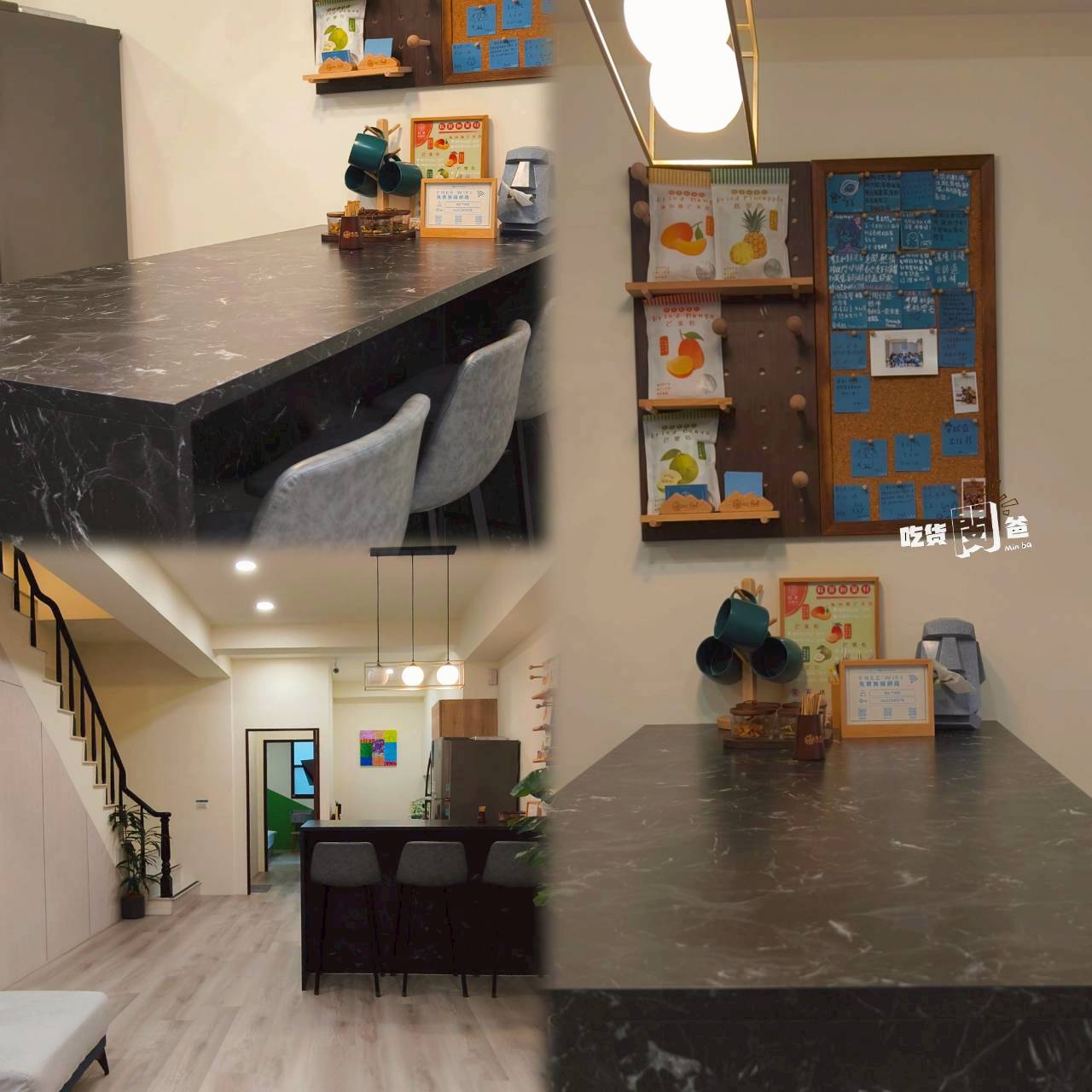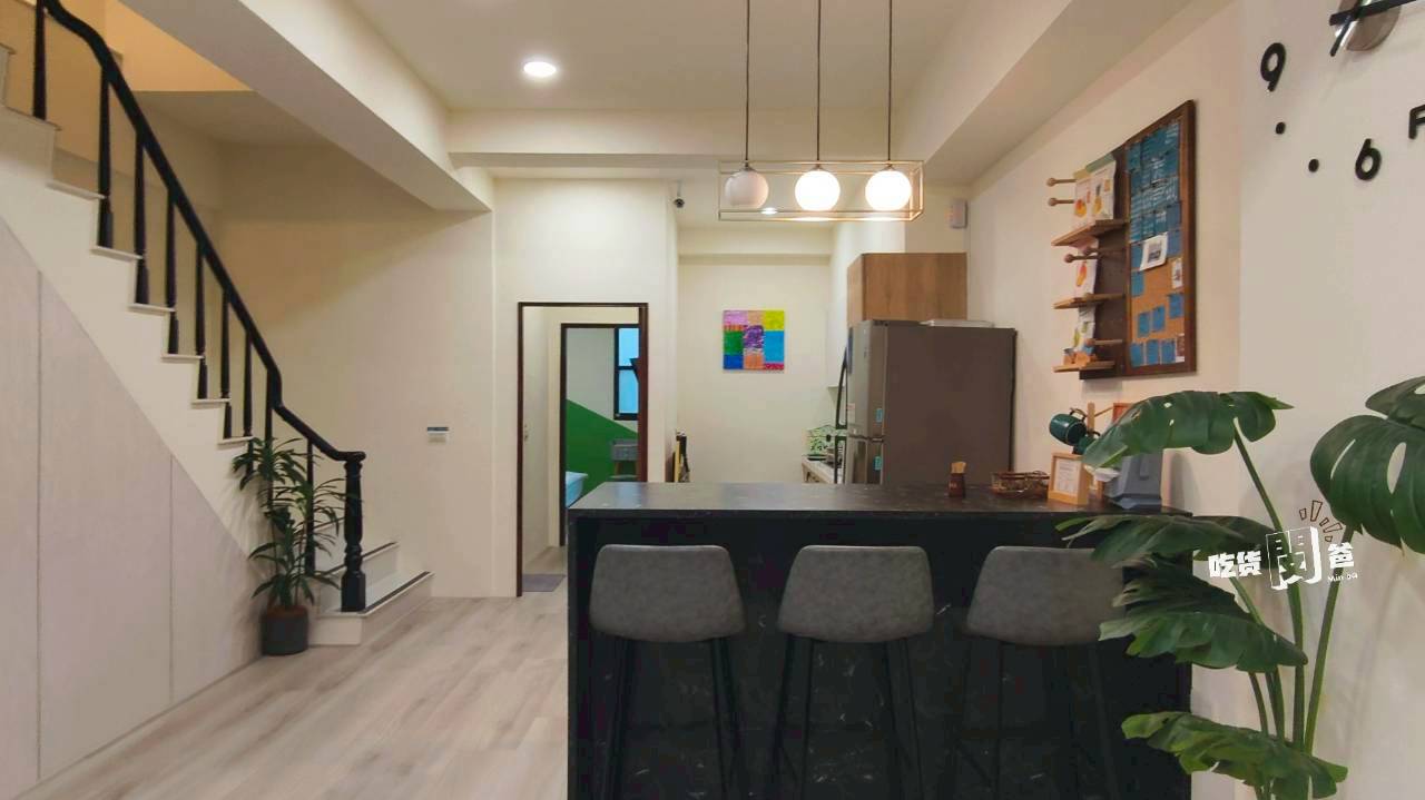 再來就是廚房混搭吧台的空間,住宿時總會嘴饞,民宿內有完善的廚房與吧台,有提供泡麵給你吃,可以隨時煮泡麵、熱宵夜,包棟甚至還能煮一桌家常菜,在吧台邊吃邊聊,氣氛超好。