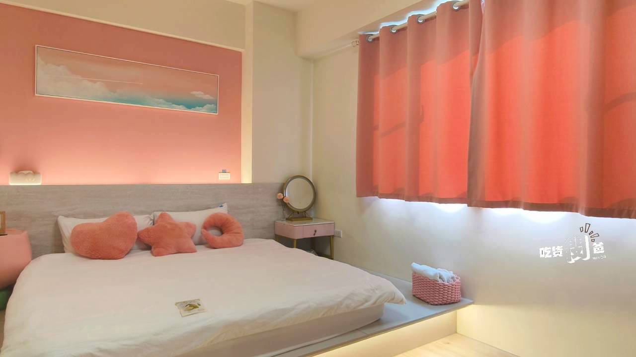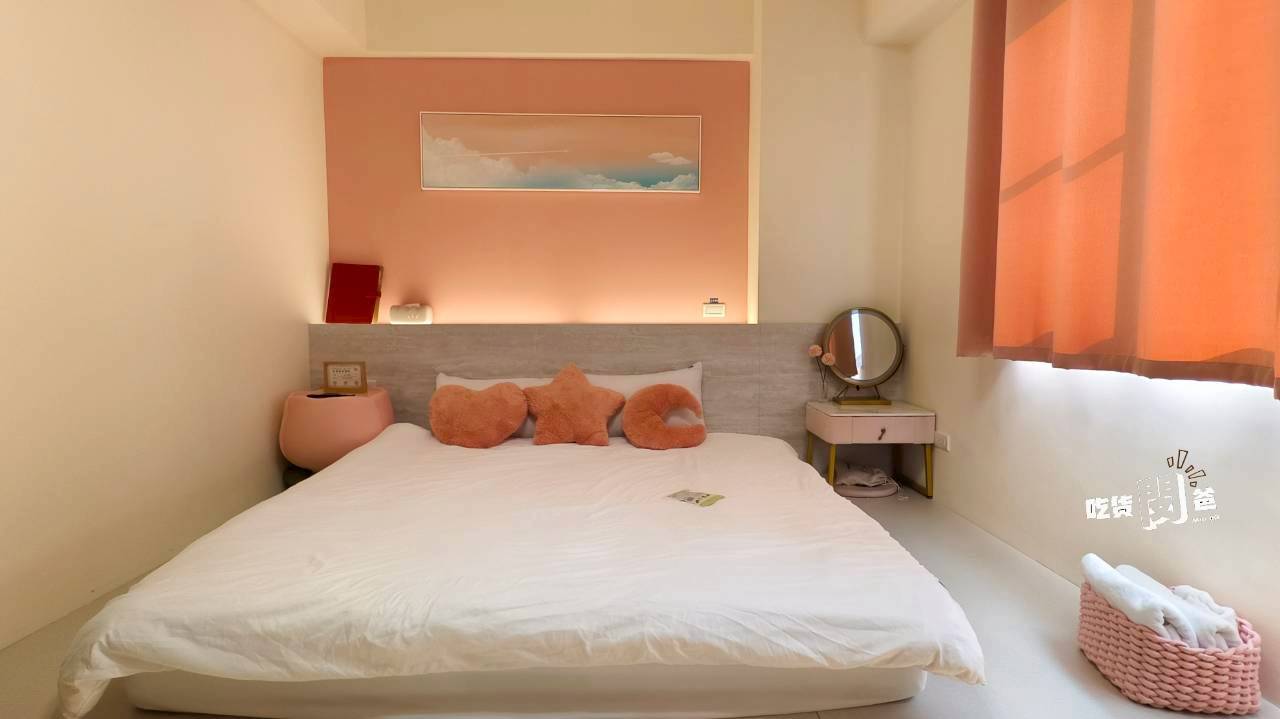 躺在粉色調的房間裡很療癒,這間房間對於想要逃離日常緊張情緒、換個輕鬆氛圍的人,這裡絕對是加分首選。
